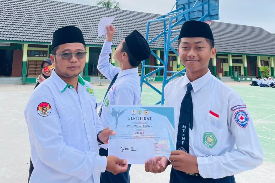 Tamiang Layang, 19/01/2026 (Humas) — Suasana upacara bendera hari Senin di lapangan MTsN 1 Barito Timur terasa jauh lebih khidmat dan penuh haru. Tepat setelah amanat pembina upacara, pihak madrasah secara resmi memberikan apresiasi setinggi-tingginya kepada para atlet karate dan pencak silat yang telah mengharumkan nama sekolah dalam rangkaian kompetisi bergengsi di awal tahun 2026.